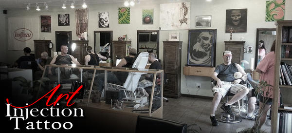 Art Injection Tattoo is one of the best tattoo shops in Springdale Arkansas. The shop is locally owned and operated. Its experienced artists focus on custom works. Besides operating as a tattoo shop the business also stocks custom works by painters, sculptors, glass blowers, custom t-shirts and even handmade pens. The artists personalize services and ensure that clients leave the studio satisfied with custom body art and other services.
