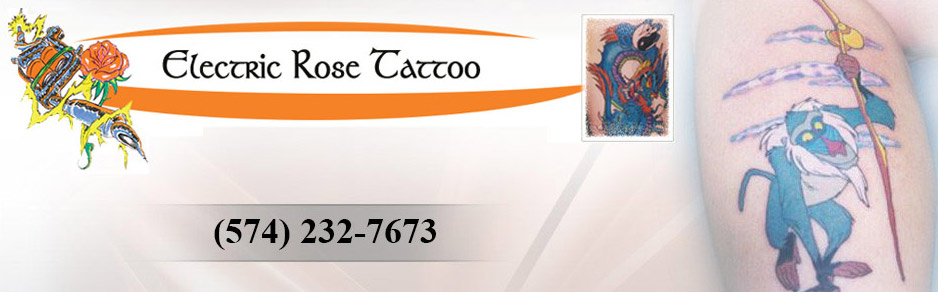 Electric Rose Tattoo is one of South Bend's most professional and experienced establishments for body piercings and custom tattoos. They have one of a kind design selection that includes realistic tattoos, portraits, and art copied from photos. The body art shop is fully approved. Electric Rose Tattoo welcomes walk-ins and is open 7 days a week. They have a friendly, comfortable, and clean atmosphere. Glen White, the tattoo shop owner enjoys doing all tattoo styles such as traditional, new school, full color, gray, and black.