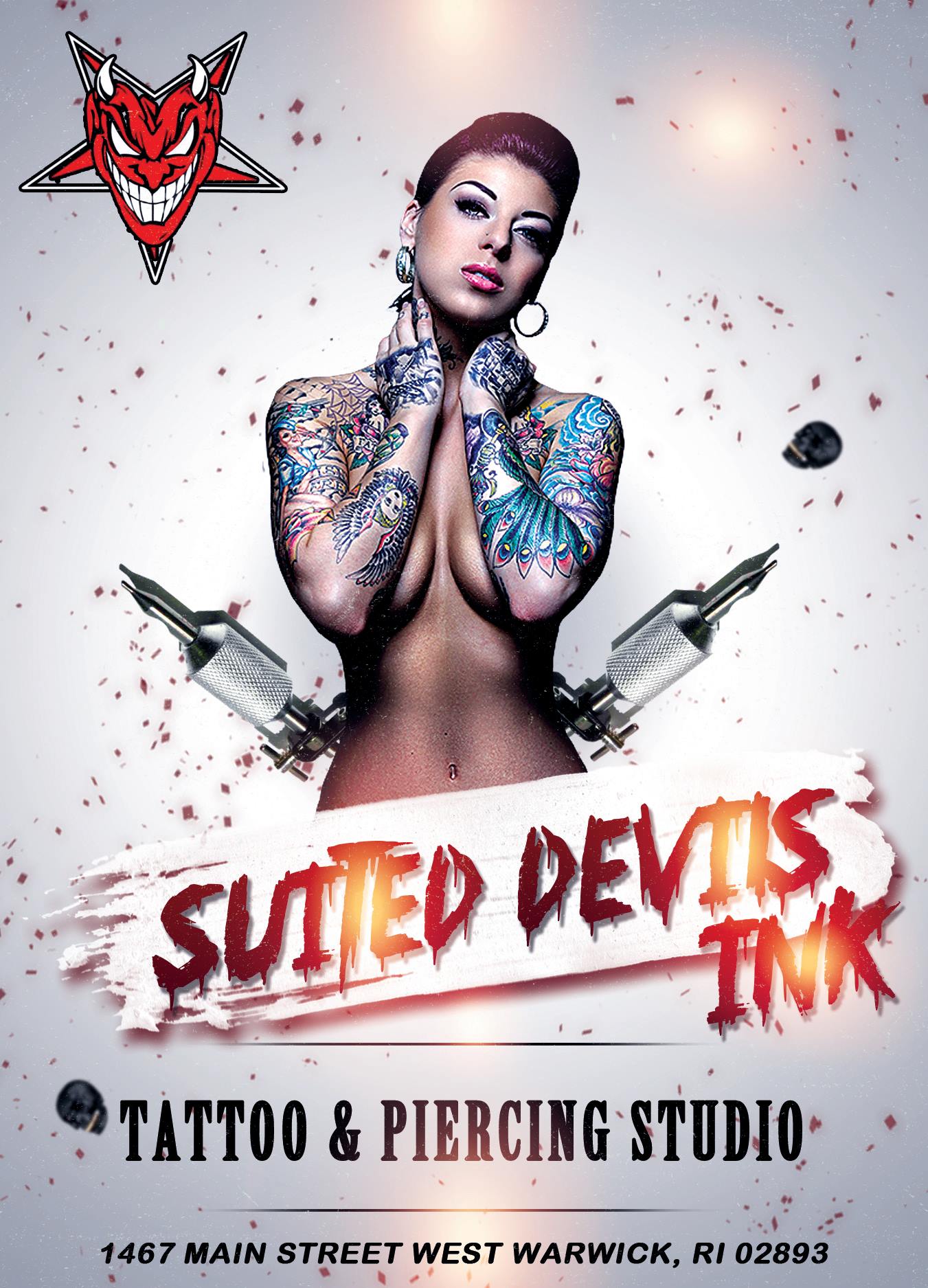 Suited Devils Ink LLC is a premiere tattoo studio based in Warwick, RI providing quality custom tattoo and all kind of body piercing services. The studio features five artists that are experienced and highly skilled with a range of tattoo designs. They are dedicated to offering personalized services assuring clients of a safe conducive and inviting environment. The piercers use modern techniques that make the experience to be less traumatic and fan.